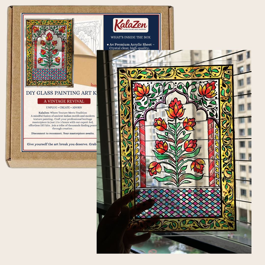 | Style | Nostalgic Indian glass painting art — modern jewelled finish for home décor & gifting |