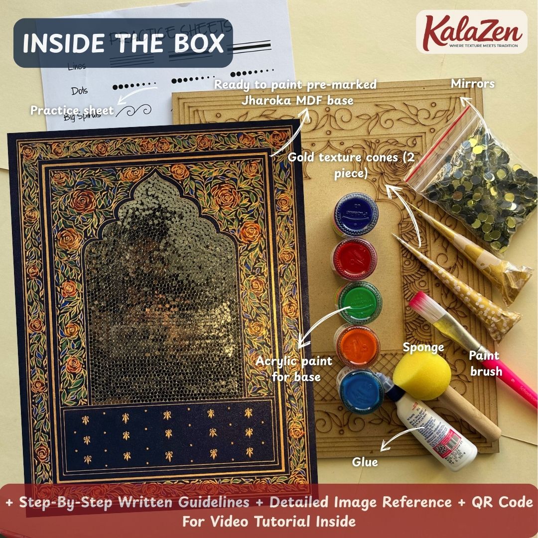 | ✦ Pre-marked Jharokha MDF base | ✦ Acrylic paints for base |